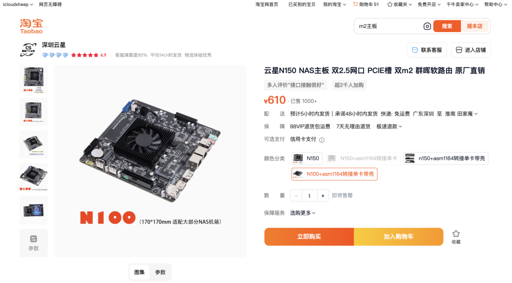 本次装机使用云星 CloudStar 板 U 套装,同时搭配 ASM1164 扩展卡,将一个 PCIE 接口转换为 4 个 SATA3 接口使其拥有总共 6 个 SATA3 接口。其拥有的两个 intel 2.5G 网口也是其拥有扩展为软路由的实力。