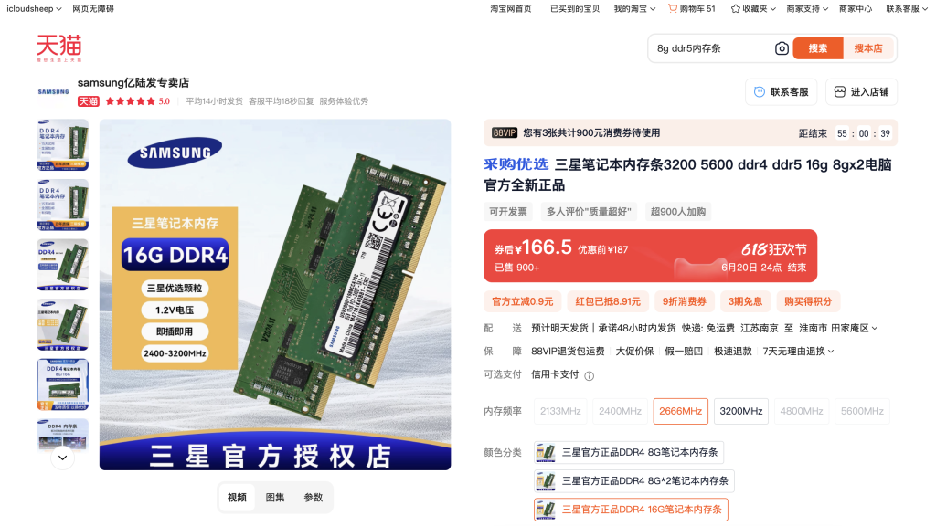 本次装机使用三星 DDR4 3200MHz 16GB 笔记本内存条。