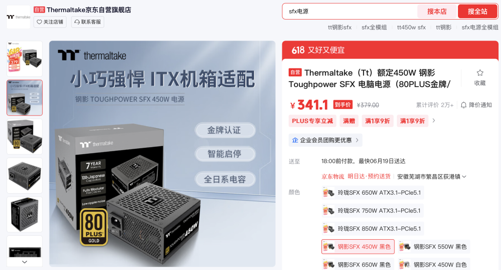 本次装机使用 Tt 450W SFX 金牌全模组电源,就整体而言,450W 显然是严重过剩的。