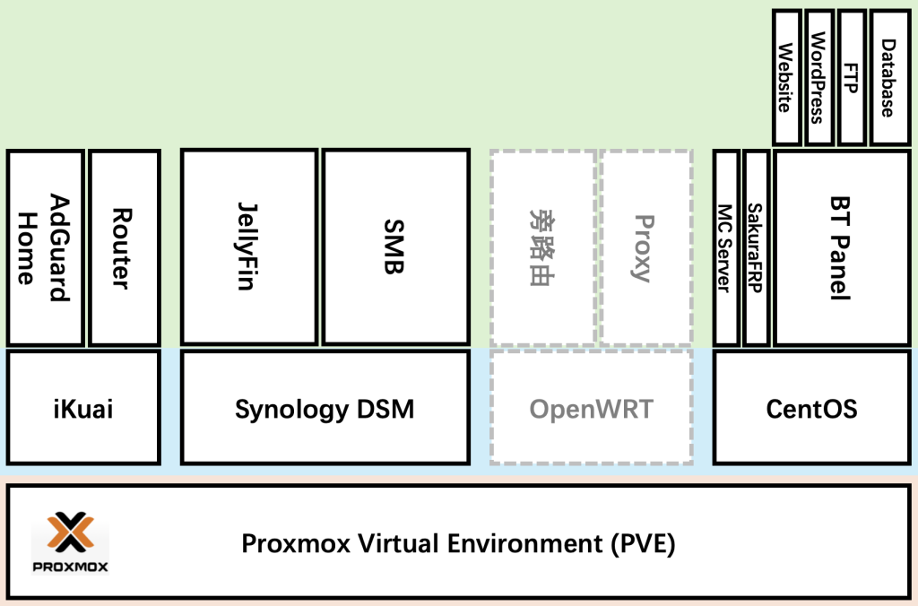 本次装机中,CentOS 担任最重要的角色,其是整个 HomeServer 的运行媒介。其功能有 Sakura FRP 内网穿透、MC Server、Website、WordPress 博客等。