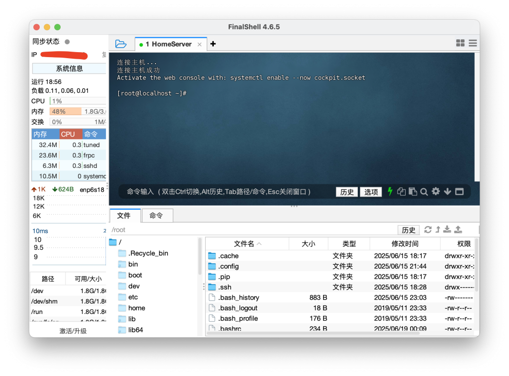 FinalShell 是一体化的的服务器网络管理软件,其支持本地化命令输入框、自动补全、命令历史、自定义命令参数等。