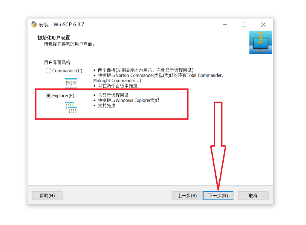 选择使用 Explorer 风格,并点击下一步。