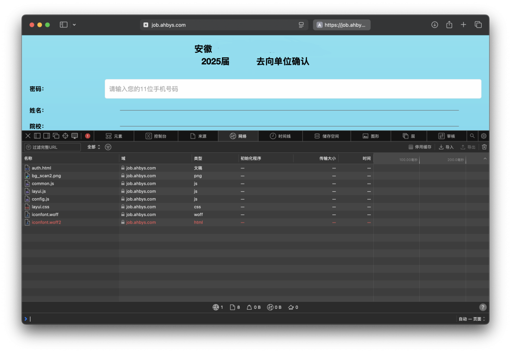 根据短信信息,打开该网页。使用网页开发者工具,定位网页网络流量。