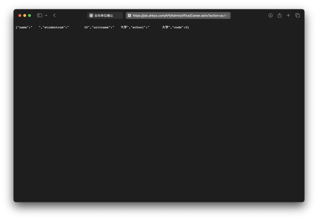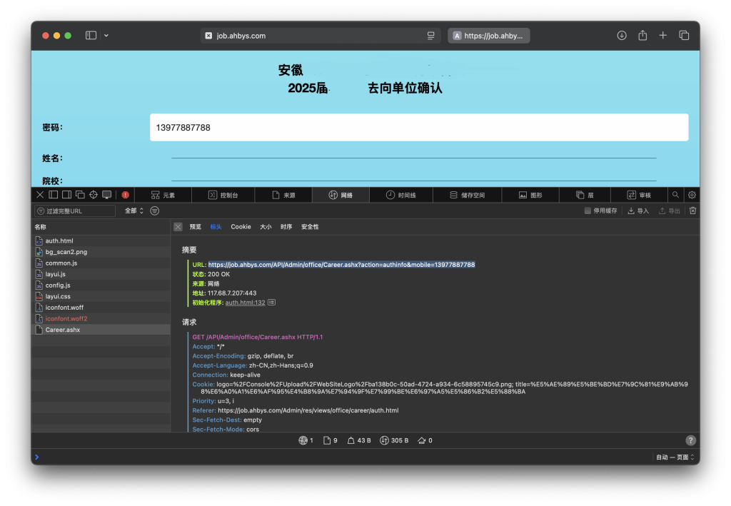 url = "https://job.ahbys.com/API/Admin/office/Career.ashx?action=authinfo&mobile=" //GET 请求 URL