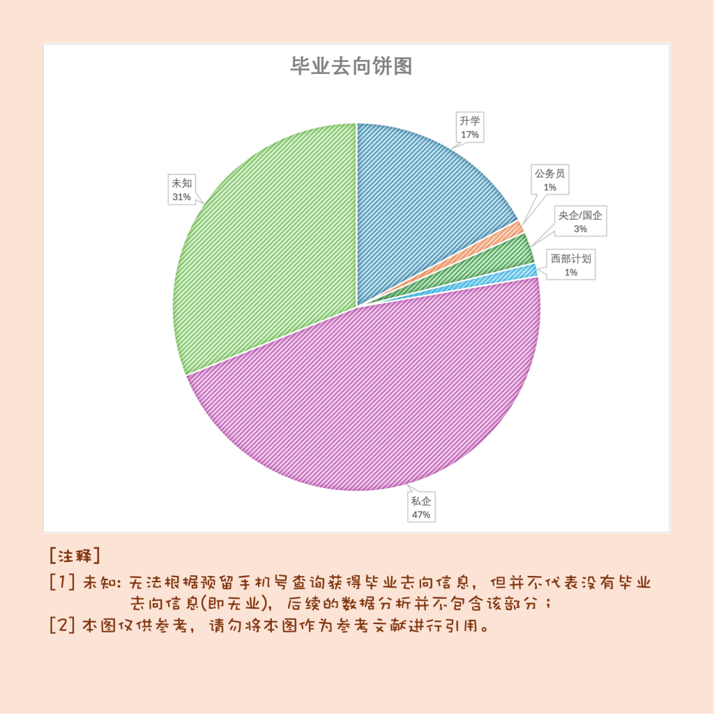 其中私企占比最大,约为47%;升学次之,占比约 17%;央国企占比约 3%;公务员与西部计划分别占比 1%。需要特别说明的是,未知并非无业,只是该用户该手机号并未查询到相关就业信息。